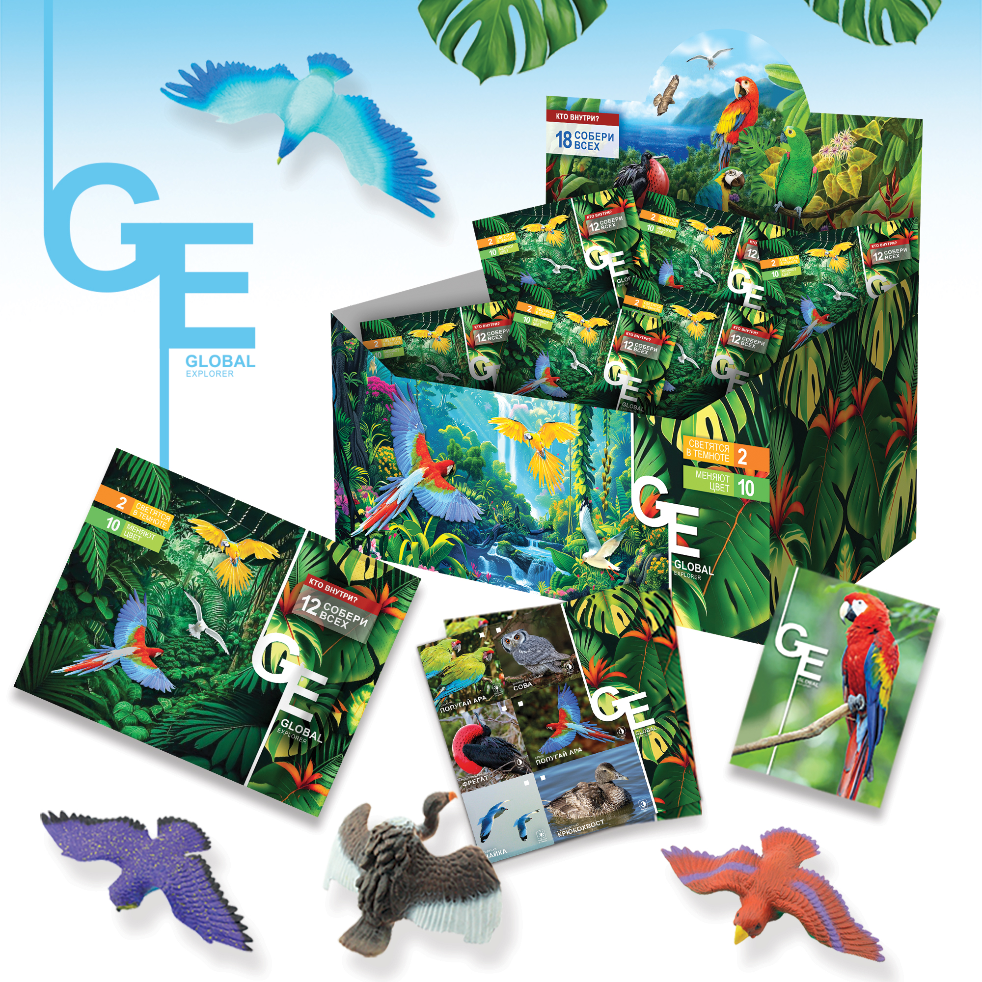 Каждая игрушка сопровождается цветным вкладышем и информационной карточкой. Отмечайте найденных «пернатых» на вкладыше, читайте факты о расцветке и месте обитания на карточке. Ведь исследовать с наглядным пособием однозначно интереснее.