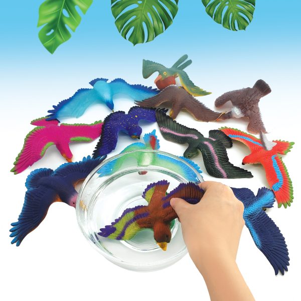В коллекции — 12 уникальных птиц: 10 из них меняют цвет, стоит лишь опустить их в теплую воду, а еще 2 светятся в темноте. Игрушки изготовлены из мягкой термопластичной резины, которую приятно сжимать и растягивать.