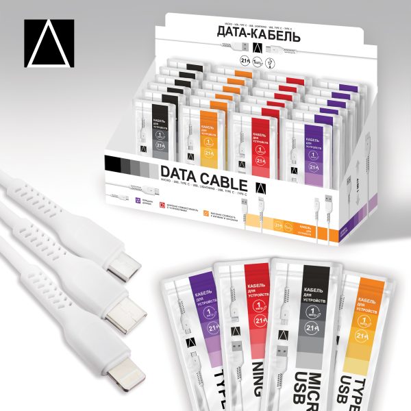 Мы предлагаем качественные кабели для зарядки и передачи данных, доступные в 4-х вариантах: Type C-USB, Lightning-USB, Type C-Type C и Micro-USB.